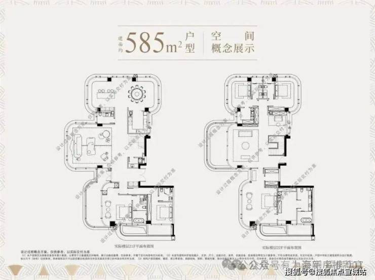 西边套标准层面积330㎡,东边套标准层面积285,西边套顶楼复式585㎡,东边套复式465㎡