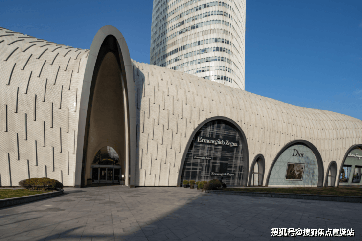古北99的建筑立面在采用天然黄金麻石材肌理搭配灵动的线条,柔化了石材的坚硬质地,端庄典雅的同时更显时尚。