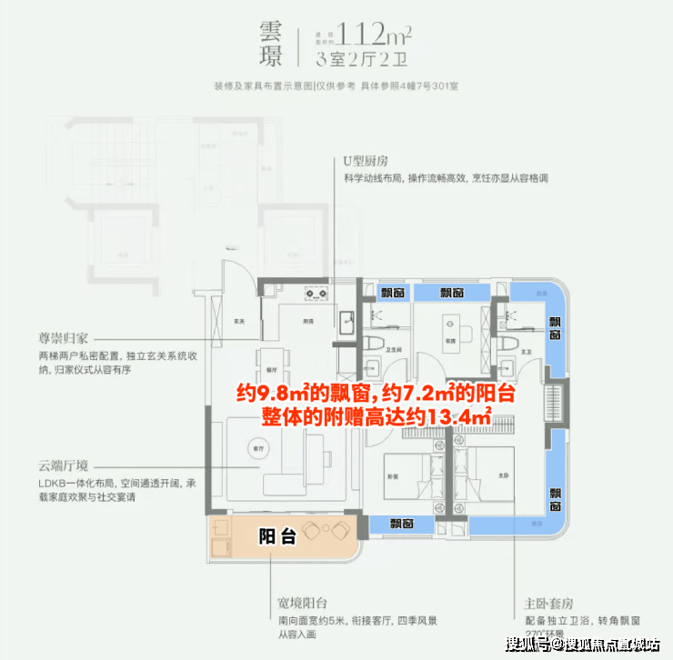 关于这个建面约112㎡的小高层产品,有几点跟大家强调一下: