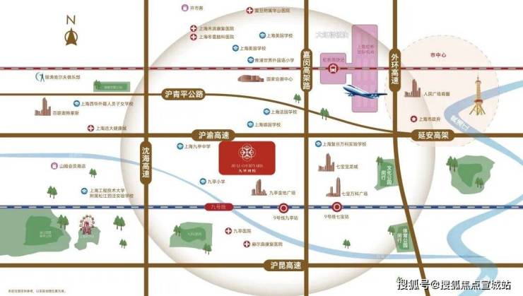 交通配套:距离地铁 9 号线九亭站直线距离约 1.5 公里,500 米内有 7 条公交线路。自驾方面,距离沪渝高速入口约 0.7 公里,嘉闵高架入口约 2.6 公里,沈海高速高速口约 2 公里。