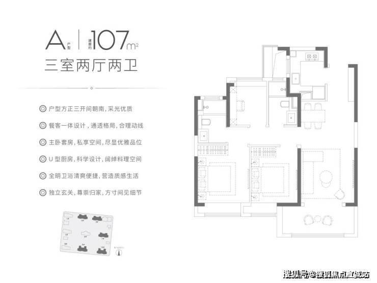 项目建面约107㎡户型集LDBK一体化、玄关入户、动静分区设计于一体,在功能性与舒适度上几乎都做到了极致!