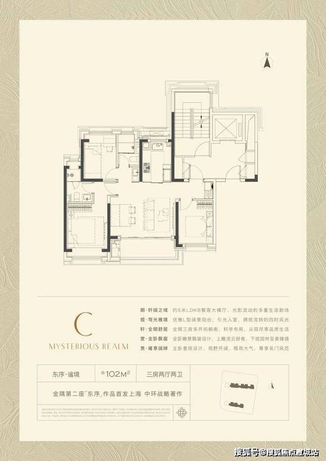 102㎡产品的全新产品,格局上超越了传统意义的三开间朝南,超大尺度的5米横厅,真正实现3.5开间,让业主起居之间沐浴更多阳光的同时,公区尺度感也直逼其他项目建面约100-120㎡户型。