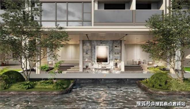双轴线的设计,充分拓宽了视野面与观赏点位,环形回廊、精神游廊与下沉庭院通过立体景观平台相融,又创造出隔岸听泉的诗意场景。在会所、在架空层泛会所、在归家路上,每个重要生活触点,业主都能拥享独特景观和欣赏视野。