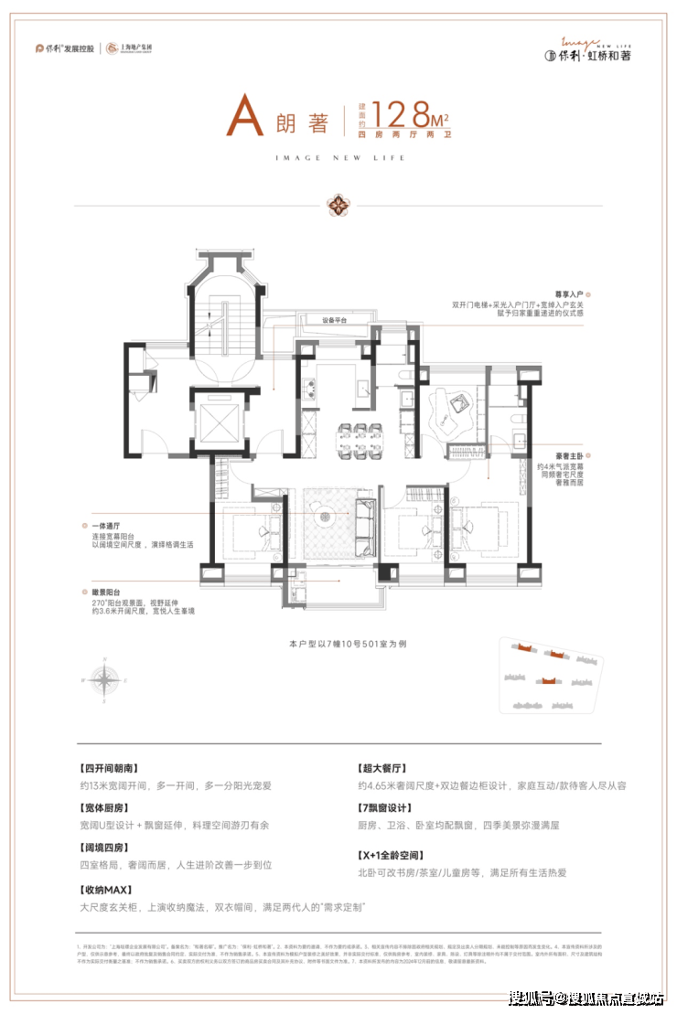 如果说实景兑现是“面子”,那产品力就是保利・虹桥和著的“里子”,尤其是建面约128㎡的楼王户型,更是凭借“类一梯一户+真四开间朝南+高拓展空间”,成为市场中同面积段功能性与舒适度标杆: