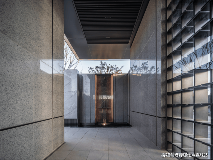 第五重: 下沉庭院打造一体式景观,墙面流水至地面,结合水中花池营造出纯粹的自然之境。