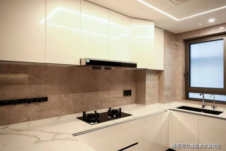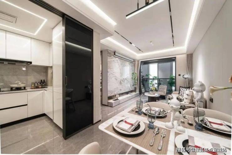厨房空间,甄选 西门子新款的抽油烟机、灶具、洗碗机等,甚至连大部分项目不配备的冰箱也是交付标准;还特别 配置了轨道插座、前端净水器和凉霸;吊轨金属玻璃移门,既美观又方便清理。