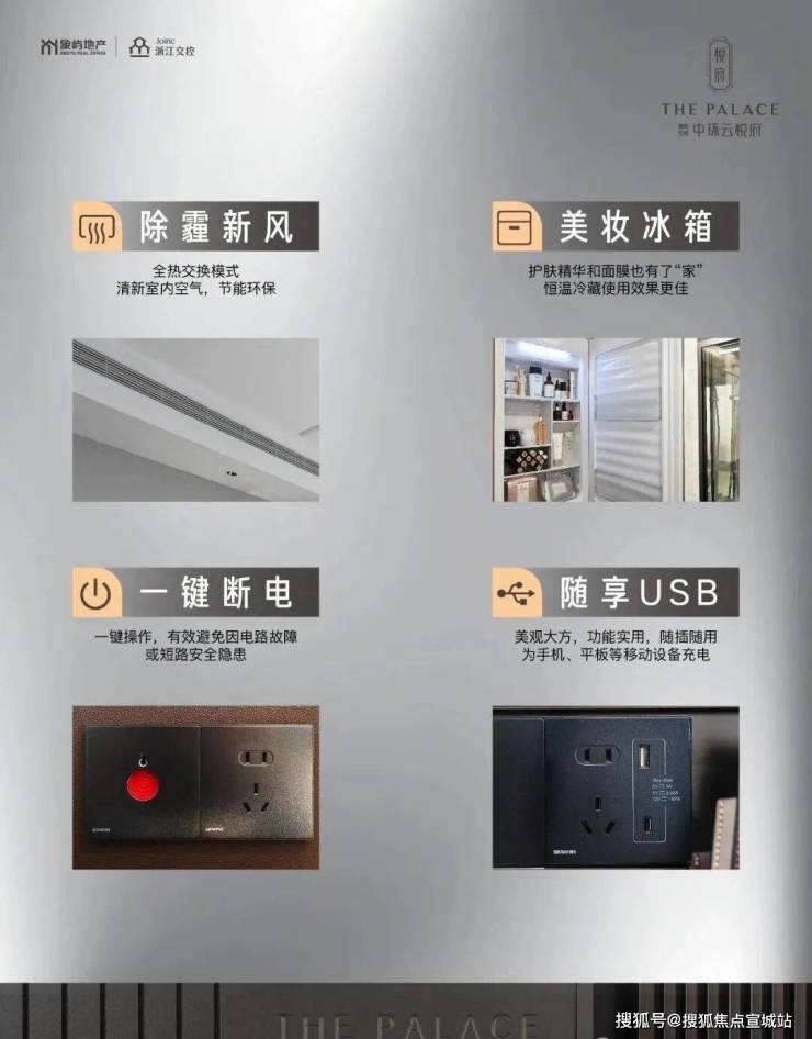 美学五感之——精致感匠心精装品质:公区部分—星级酒店都会风融入每一个细节,例如入户单元的门厅设计、电梯厅的色彩搭配以及门牌号、室号展示等。地上地下入户大堂以及所有的公区电梯门厅,都采用了品质精装配置。高品质地库空间,爱车有“家”,尊享优雅。