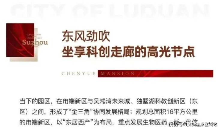 甪端新区成立于2022年,作为园区向东外溢第一站,未来将承接生物医药、新一代信息技术、智能制造等高端创新产业,汇聚桑田岛生物产业园、桑田岛科创园、华为苏州研究所、苏州苹果研发中心规划中、联东U谷等最尖端的产业,吸附大量的高级人才,7大组团协同发展,成为下一个城市增长极。