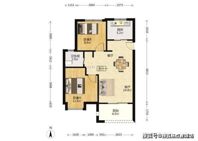 建面约77m²2房2厅1卫▼