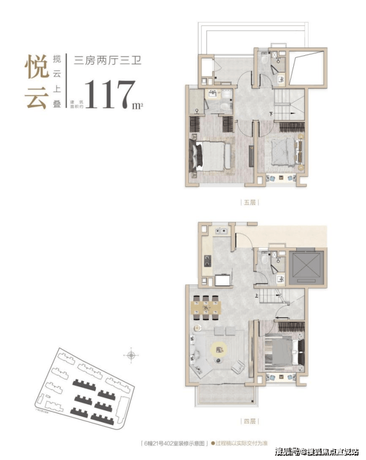 项目的上叠户型3房3卫的设计,每个家庭成员都能找到独属于自己的天地。