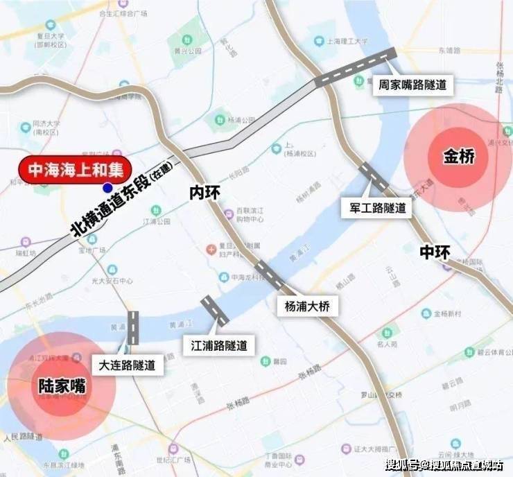中海·海上和集位于杨浦区江浦板块,属于内环内。项目四至:东至许昌路,南临飞虹路,西至规划E1-3地块,北面则是辽源西路。西面是去年售罄的保利天汇项目,而北面是上海城建的项目。