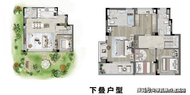 下叠户型一层为公共活动区域,二层为生活休憩区,整体的空间较为宽敞。