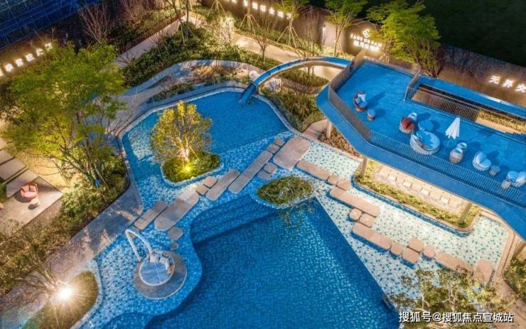 近千方泳池综合区,师从芭提雅cross酒店的异形泳池,绿城将其命名为“映翠泳芯”——不止是泳池,而是构筑了一个泳池综合区,近1000㎡的面积,或躺、或坐;或赏、或嬉,连通那架巨大的水上滑梯,将芭提雅的自然惬意一并收纳。