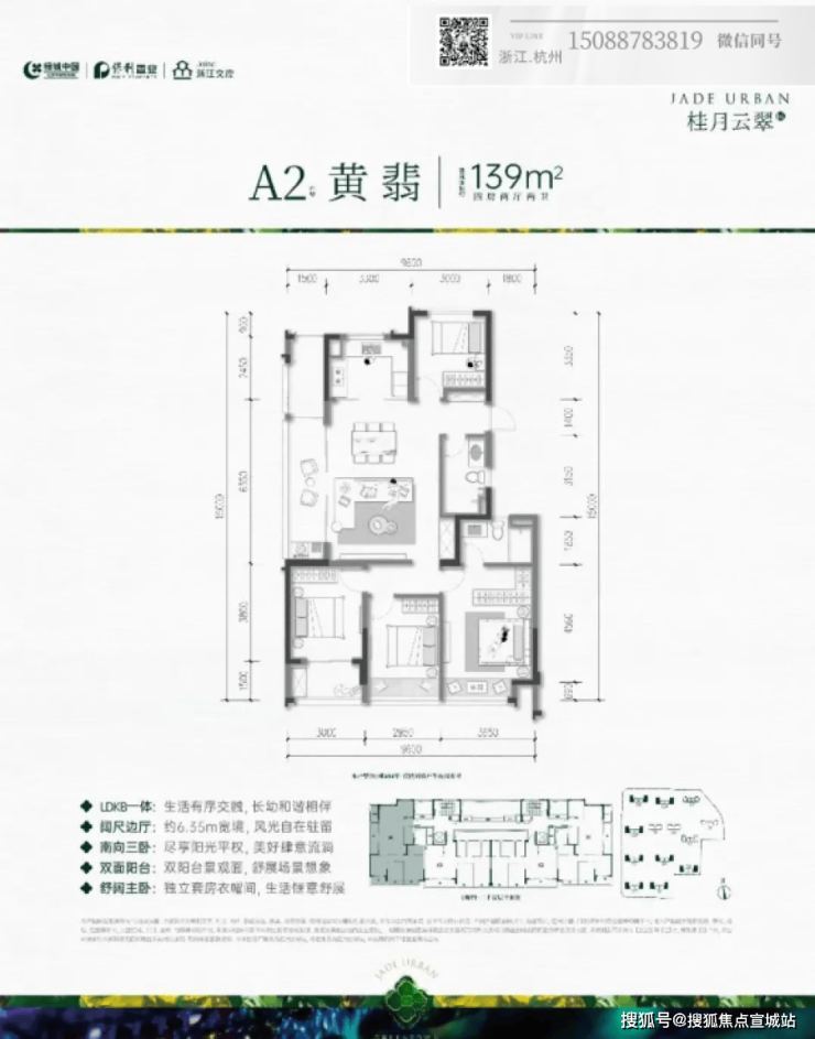A户型:约139㎡户型,四房两厅两卫,三开间朝南,全明边厅设计,大横厅带大阳台,采光视野好;三个卧室均朝南,带阳台或飘窗,面宽大、采光好;主卧大套间、阔绰收纳空间。是绿城过往的项目中难以见到的。餐客厅一体,连带一个约6.35m左右阳台,景观视野堪称一流。