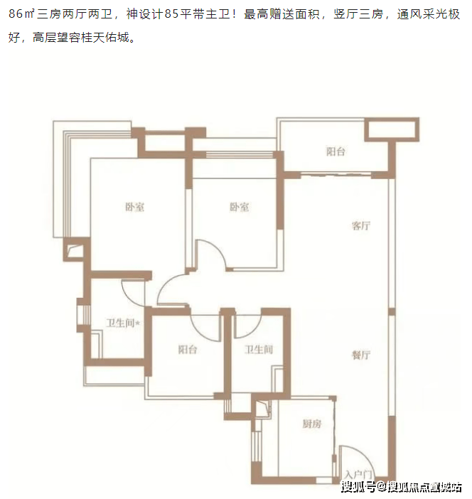 主力户型:有 89㎡、103㎡、109㎡的 3 居室。其中,89㎡户型为 3 室 2 厅 1 卫,总价约 133.5 万元 / 套;103㎡户型为 3 室 2 厅 2 卫,总价约 154.5 万元 / 套;109㎡户型为 3 室 2 厅 2 卫,总价约 163.5 万元 / 套。