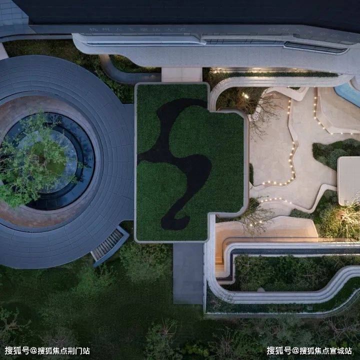 因项目整体抬高,从下沉庭院到架空层“空中花园”的落差极大,形成独特的峡谷地貌,杭序府的设计团队汲取九溪烟树为造园灵感,打造一个立体多维的城市溪谷交互园林;因项目毗邻江岸,杭序府的外立面以“站立的江潮”为灵感,