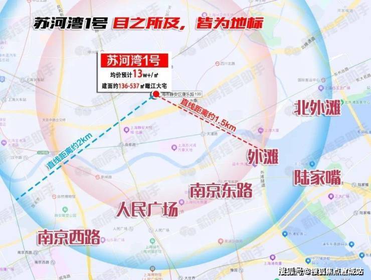 「苏河湾1号」占位城市核心,顶级资源配套密布:直线距离约700米内涵盖5条城市轨交线路和多维城市主干道、商圈密布、城市顶层医疗资源环伺!
