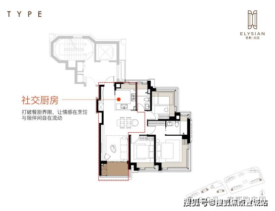 2.social厨房设计,开放式厨房水槽区转向餐厅一侧,杜绝消极空间让室内轻松连贯,也让情感交流、家庭互动在无界限。