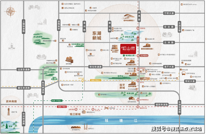 地铁9号线五洲路站100米,无缝换乘1/3(二期在建)/18号线(在建),邻近秋石高架、东湖高架、望梅高架,近揽黄金十字轴线—荷禹路、五洲路,通达全城;临平高铁北站(规划)、沪乍杭铁路,极速融沪,连接长三角。