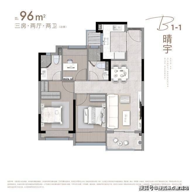 户型方面:约85-96㎡的全三房设计,每一款户型都是会传递出国贸的产品观。南北通透,布局考究,动静分离。