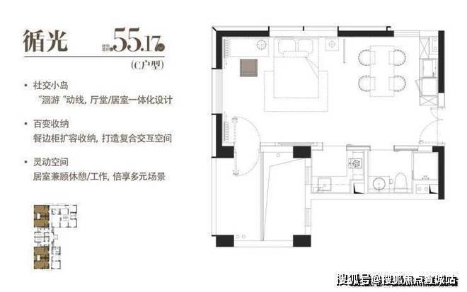 建面约55.17㎡一室一厅一卫