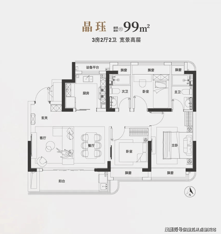 主力户型:有建面约 91㎡/99㎡宽景高层、约 145㎡上叠、约 156㎡洋房、约 163㎡下叠等户型。其中,91㎡三房为三开间朝南,5 飘窗 + 1 阳台设计;99㎡三房拥有 5.5 米 IMAX 横厅和 6 米宽景阳台,采用 LDKB 一体化布局。