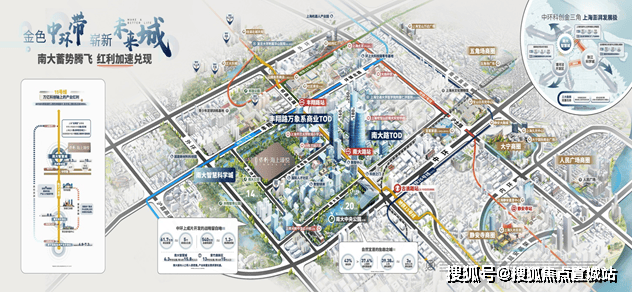 ◐从张江到漕河泾到南大智慧城,中环上的黄金三角关系呈现出了不可复制的“黄金中环科创带”,南大智慧城在空间格局上占据了北上海门户的科创中心。