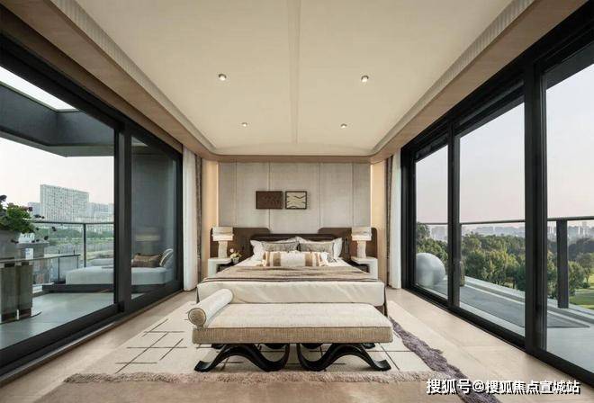 主人套房以度假酒店为标尺,配备独立衣帽间与临窗浴缸,营造从容奢享的私属世界。约28㎡南北三露台,让生活尽享诗意瞬间。