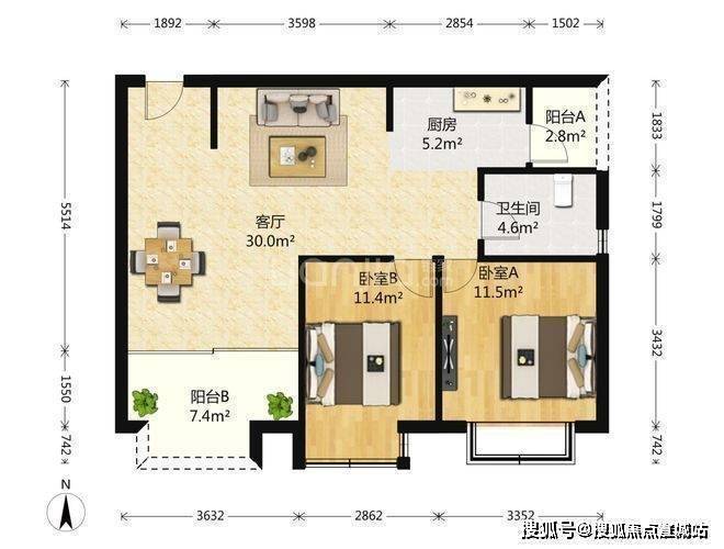 建面约94㎡2房