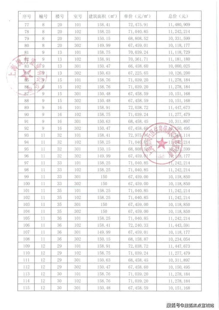 崇明某触发积分项目部分一房一价表