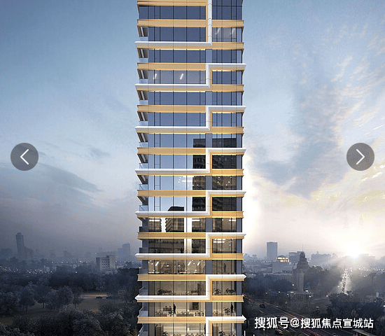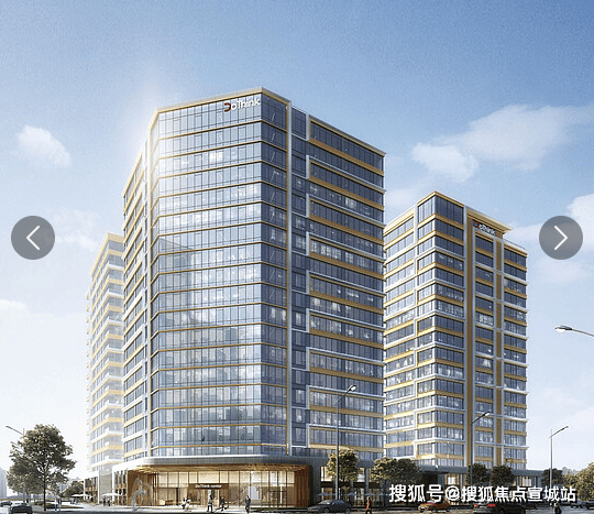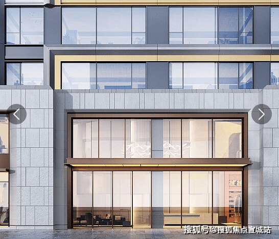 整个园区由3幢高层半围合而成,外立面由日清设计操刀,大面积玻璃+铝板+石材,点缀斜切+香槟色金属线条,极具辨识度。