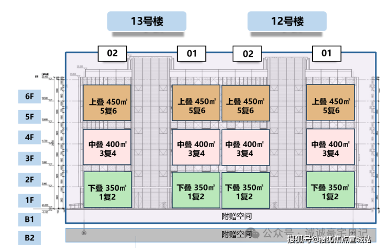 叠加商墅:约350/400/450/1200/2400/4800㎡