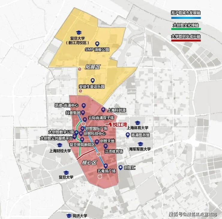 项目处于中部大创智核心区内,根据杨浦区规划,大创智和杨浦滨江、环同济、大创谷一样,是杨浦重点发展的四大区域之一。