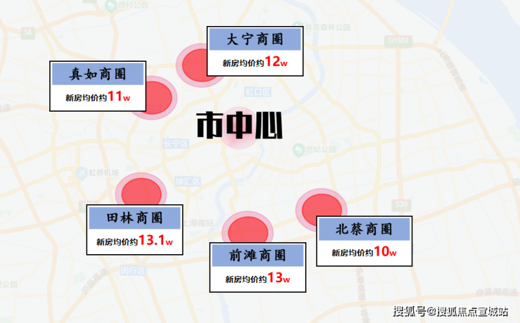 上海老牌四大城市副中心:五角场、徐家汇、真如和花木,皆已成为上海超繁华商圈和产业高地。