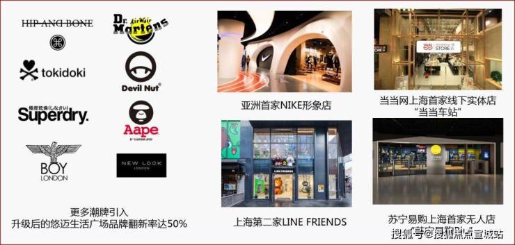 万达、百联、悠迈在改造升级过程中对品牌也有了不少调整,悠迈的品牌翻新率甚至达到50%,新开业的合生汇也引进了不少时尚潮牌。同时,五角场也引进了一些新兴业态,如当当网首家线下实体店,苏宁易购上海首家无人店“苏宁易购Biu”等,科技感与潮流感十足。