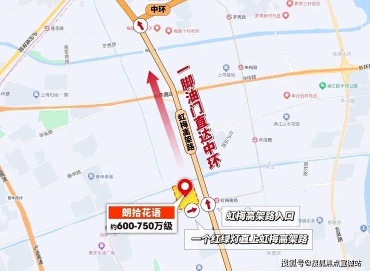 朗拾花语所在的梅陇板块距离中环线直线约2.8km,这一点比同级别的各板块都近,甚至比约800万级的莘庄七宝都近。