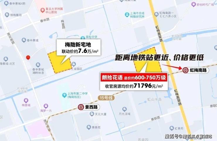 前不久梅陇的另外一块宅地出让,地块距离地铁站步行约1.4km,联动价约7.6万/㎡。