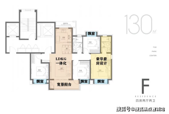 户型:143户型4房设计功能性非常强,三面开窗,大开间阳台,采光通风较好
