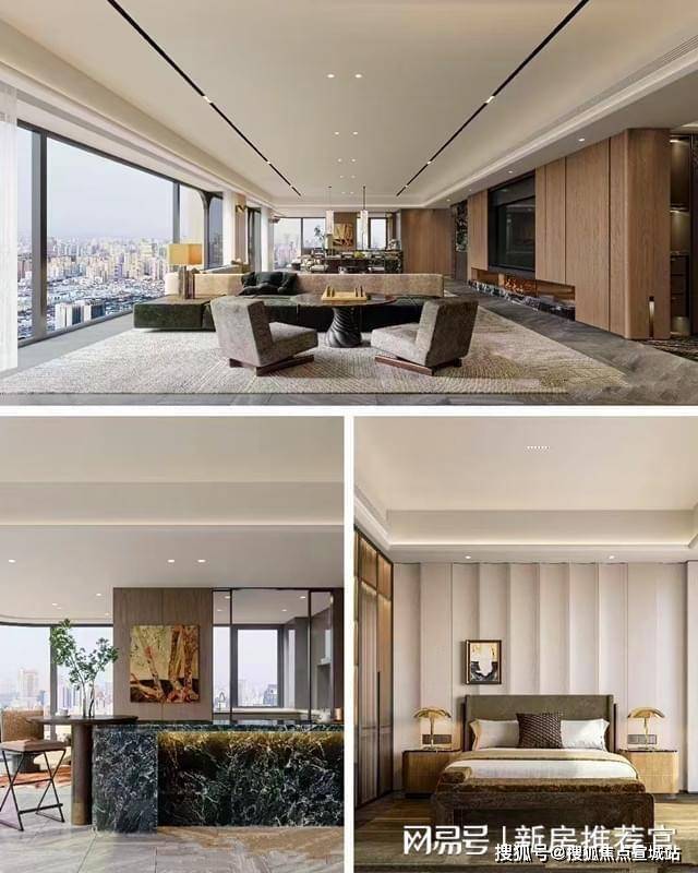 - 315㎡样板间由LSD设计团队操刀,石材墙面、十件套厨房家电、独立酒柜、电动窗等配置,交付标准对标国际顶豪。