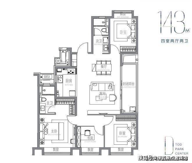 建面约143m²户型: