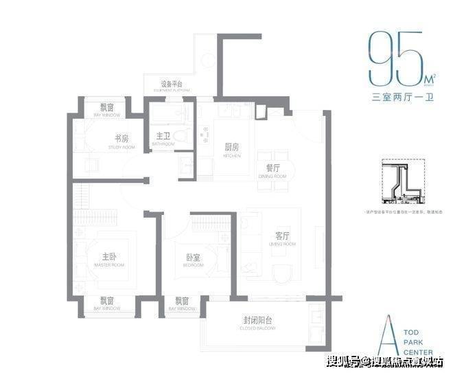 建面约95m²户型: