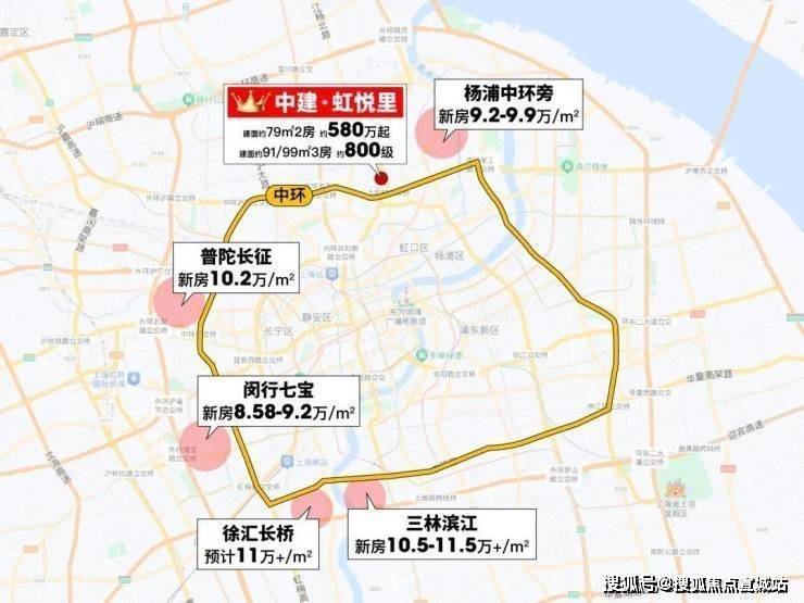 同环线普陀长征新房均价10.2万/㎡;闵行七宝也已8.58-9.2万/㎡。