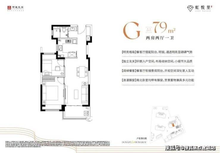 建面约79㎡2房G户型: