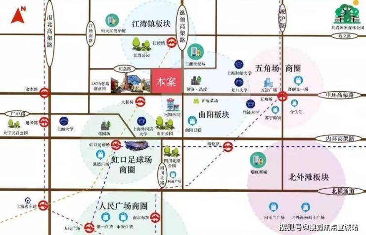 项目区位项目位于上海市杨浦区逸仙路靠近万安路,紧邻中环交通动脉线,逸仙路高架场中路下匝道、轻轨明珠线江湾镇站全线畅通。在城市商业副中心五角场、大柏树商圈,双商圈触手可得!周边小区环绕、生活配套成熟、环境优美。