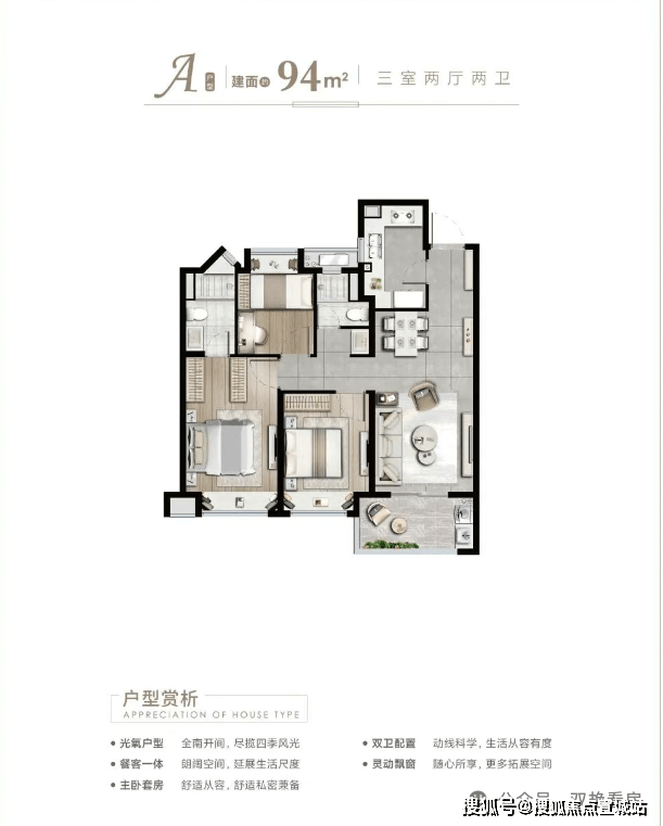 ②94平 (三室两厅两卫) 全南户型,南北通透