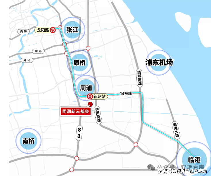 便捷交通: 快速路网:S2沪芦高速、S3沪奉高速、S32申嘉湖高速纵横,20分钟直抵张江,30分钟直达中环,1小时通达全市轨道交通:轨道交通地铁16、27号线(规划中)核心干道:申江南路、康新公路、沪南公路等沪南公路:由北蔡进入周康、航头、新场至惠南镇东门,可以说是整个大浦东的黄金走廊申江路主干道:双向六车道,连接外环和中环可直达张江