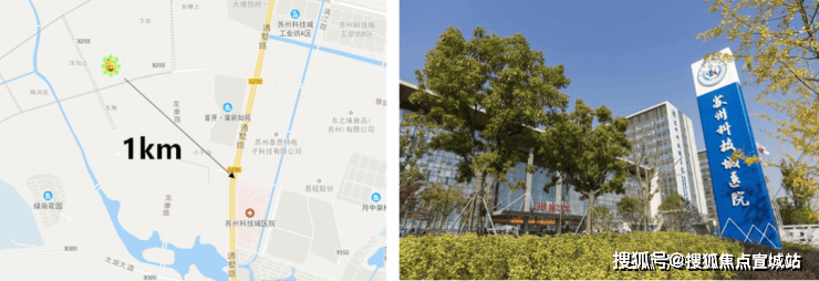 【近在咫尺的公共医疗】科技城医院,作为一家三级综合性医院,距离本案直线距离仅1km。