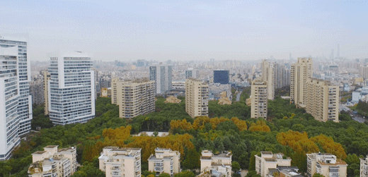 整个社区都是绿色森林,树海环抱,连底层都挑空6~9米,种植绿色,让每户人家都能“开窗见树”,让房子生长在森林之上.