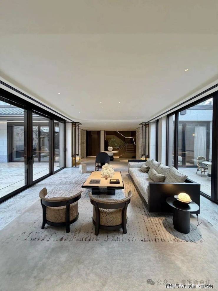 在空间打造上,通过多重庭院及露台、地下室、阳台等多维空间,极大地拓展住宅的使用功能与体验。通过庭院、地下(采光井)、宅间(大面积玻璃窗、阳台、露台)等有机结合实现多重采光系统,最大化保障空间通透性、确保采光与通风,打造会呼吸的风貌墅。