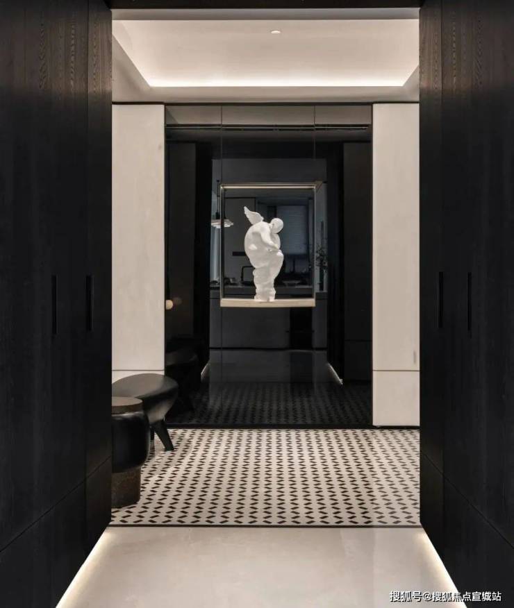 室内设计融合了香奈儿风格的温柔都市时尚感。整体色调以黑白灰为主,既有现代风尚的冷静与理性,又有都市生活的时尚与雅致。